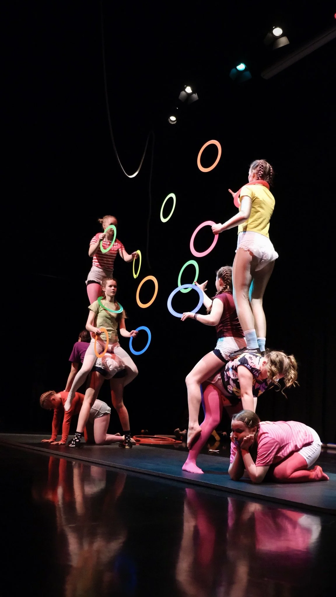 Ilma-akrobatia 4, 5, 6 ja 7- Jatkoryhmät, syvennytään lisää eri ilmavälineisiin ja oman lajin treeniä.